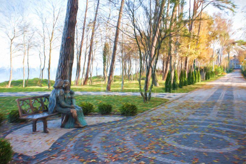 Krajobraz nadmorski przeniesiony na płótno malarskie.