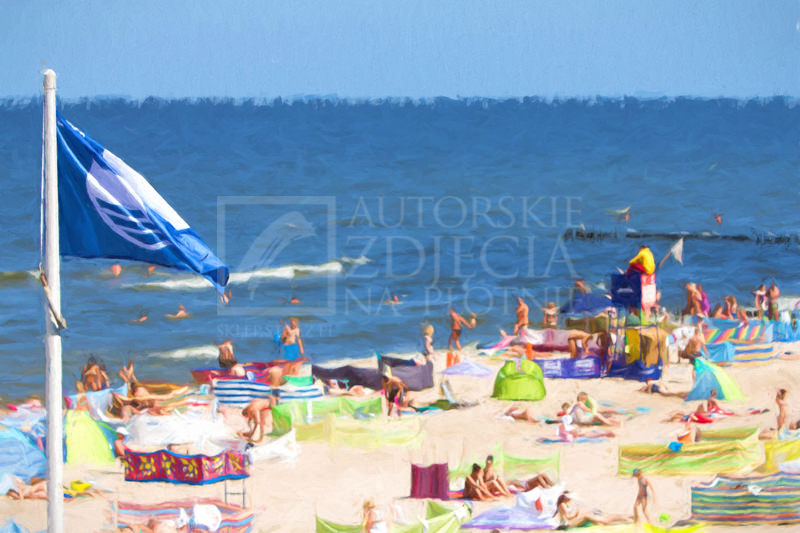 Krajobraz nadmorski przeniesiony na płótno malarskie.